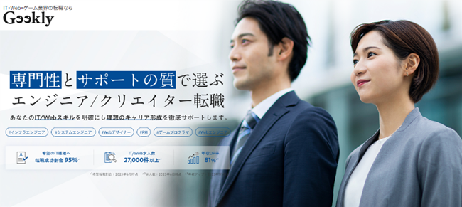 ギークリーは、IT・WEB・ソーシャルゲーム業界に特化した転職支援サービスで、未経験からでもIT・ゲーム業界に転職することが可能です。